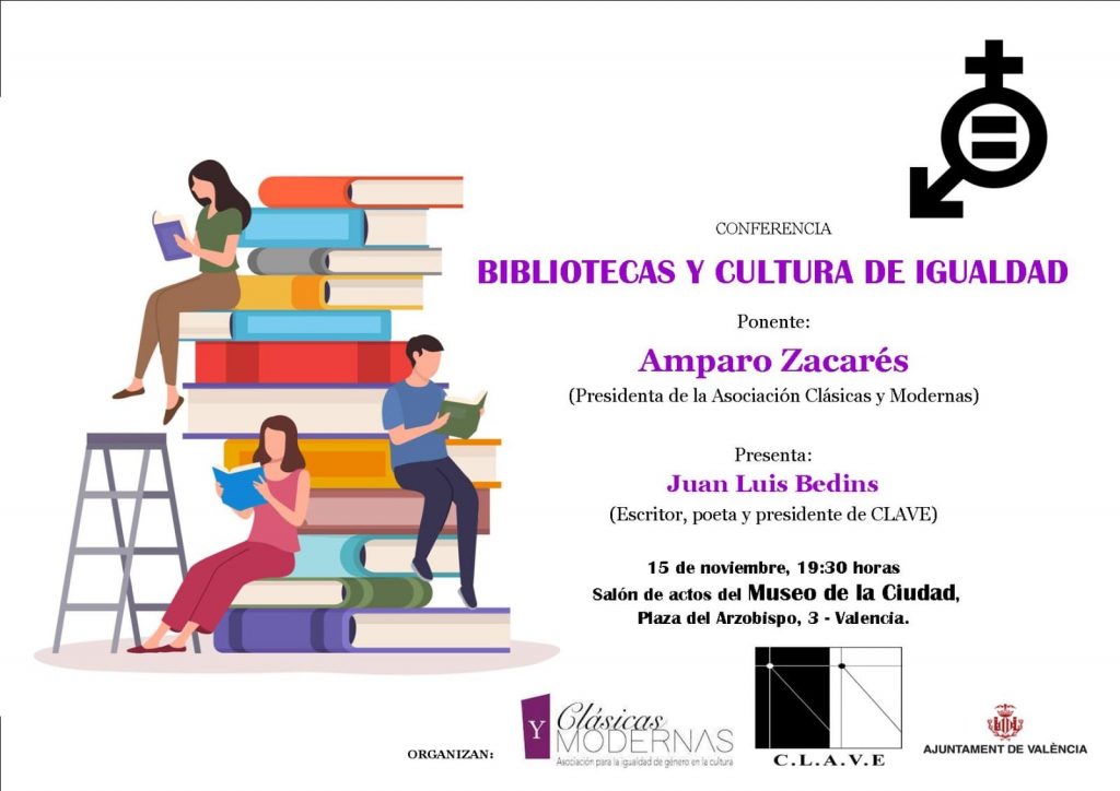 En esa línea, en el Museo de la Ciudad, el 15 de noviembre fue la fecha para hablar sobre Bibliotecas en Igualdad, proyecto vinculado a la Asociación Clásicas y Modernas. Asociación para la Igualdad de Mujeres y Hombres en la Cultura. La presentación y organización del evento corrió a cargo de Juan Luis Bedins Pérez, presidente de la Asociación ClAVE.
