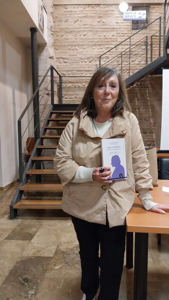 Tan solo un día después, el 16 de noviembre, en referencia a la conmemoración del Día Mundial de la Filosofía, tuve la oportunidad de recordar a las filósofas que fueron olvidadas o no consideradas en la historia del pensamiento. En concreto, dediqué la atención a María Zambrano y al libro del que soy autora junto a Rosa Mascarell Dauder. El evento se realizó dentro del programa Llegim al Pobles y tuvo lugar en la Biblioteca de Guadassuar, bajo la coordinación de la bibliotecaria Teresa Gomis.