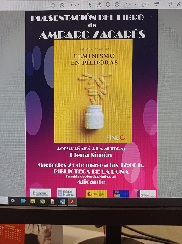 El pasado 24 de mayo se presentó en la Biblioteca de la Dona de Alicante el libro Feminismo en píldoras.