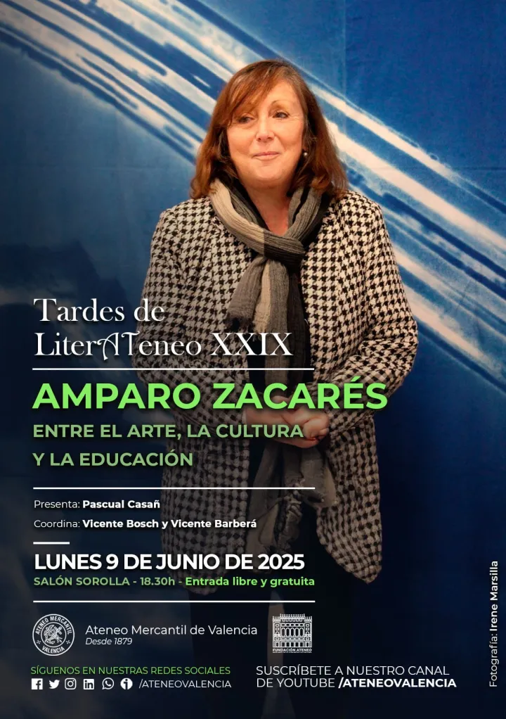 El pasado 9 de Junio de 2025, numeroso público acompañó a la homenajeada que rememoró su biografía, su obra literaria y académica, así como los logros institucionales que está llevando a cabo la Junta Directiva de Clásicas y Modernas bajo su impulso y su presidencia. Amparo Zacarés, doctora en filosofía, escritora y crítica de arte, ha sido profesora de Estética y Teoría de las Artes en la Universitat de València y en la Universitat Jaume I de Castellón. Su compromiso con la igualdad, la cultura y las artes, le han llevado a formar parte de varias asociaciones: Clásicas y Modernas, AVCA, SEyTA, MAV y Colectiva Portal de Igualdad. Es reconocida por su investigaciones académicas vinculadas a la cultura de paz, la educación artística y el feminismo.